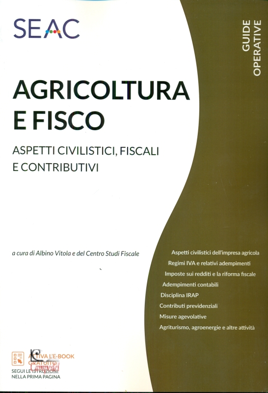Agricoltura e Fisco 2025 Questa guida completa e aggiornata di Seac Editore è lo strumento essenziale per commercialisti, consulenti e imprenditori agricoli. Il testo analizza in modo dettagliato gli aspetti civilistici, fiscali e contributivi dell'agricoltura, integrando le ultime novità introdotte dalla Riforma Fiscale (D.Lgs. 192/2024) e gli impatti sui redditi dei terreni. Riforma Fiscale e Redditi: • Imposte sui redditi (IRPEF/IRES) e le novità introdotte dalla Riforma. • Analisi del nuovo sistema di calcolo IRPEF a scaglioni per Coltivatori Diretti e IAP (Imprenditori Agricoli Professionali) per il 2024 e 2025 (dopo l'abrogazione dell'esonero). • IVA e Adempimenti: • Regimi IVA applicabili al settore agricolo e adempimenti connessi. • Registri obbligatori e adempimenti contabili per i produttori agricoli. • IRAP e IMU: • Disciplina IRAP: analisi dell'esenzione generale (art. 32 TUIR) e delle attività che rimangono soggette al t ributo regionale. • Adempimenti dichiarativi: Guida alla compilazione delle Dichiarazioni IVA, Redditi e IMU. • Attività Connesse e Fiscalità Speciale: • Focus su Agriturismo e Agroenergie (fotovoltaico, biogas, biometano, agrivoltaico). • Cessione di crediti di carbonio e implicazioni fiscali. • Incentivi, Aiuti di Stato e Finanza: • Analisi delle misure agevolative, inclusi gli incentivi per l'imprenditoria giovanile (L. 36/2024). • Nuovo capi tolo dedicato agli Aiuti di Stato in agricoltura, la cumulabilità e i programmi nazionali/comunitari. • Bilancio in Agricoltura: Approfondimento sulla rilevanza del bilancio ai fini economico-finanziari e per l'accesso al credito bancario. Libreria Campedèl Belluno Acquista | |