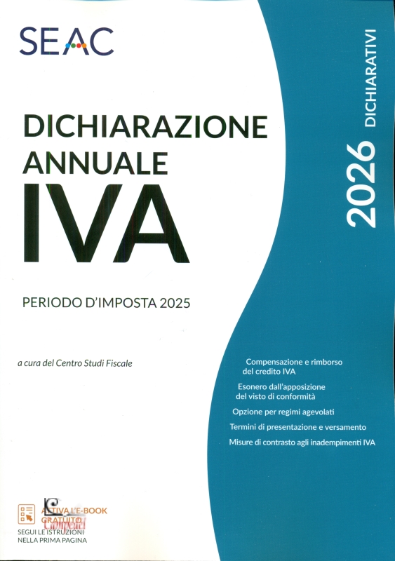 Dichiarazione Annuale IVA 2026: Guida Operativa a Modelli, LIPE ed Esterometro Il manuale "Dichiarazione Annuale IVA 2026" di Seac Editore è lo strumento indispensabile per affrontare la stagione dichiarativa con precisione chirurgica. In un contesto di controlli sempre più stringenti e incroci di dati in tempo reale tra fatture elettroniche, corrispettivi e modelli dichiarativi, questo volume offre il supporto tecnico necessario per prevenire sanzioni e gestire correttamente il credito IVA. Novità e Adempimenti 2026 L'edizione 2026 approfondisce le recenti riforme introdotte per contrastare l'evasione e semplificare gli adempimenti: • Nuova Procedura di Liquidazione Automatica: Analisi della misura introdotta dalla Legge di Bilancio 2026 applicabile in caso di omessa presentazione della dichiarazione. • Dichiarazione IVA Precompilata: Focus sulle modalità di validazione e integrazione dei dati messi a disposizione dall'Agenzia delle Entrate. • Visto di Conformità 202 6: Regole e soglie aggiornate per l'esonero dall'apposizione del visto per compensazioni e rimborsi. • Esterometro: Guida alla comunicazione dei dati delle operazioni con soggetti non stabiliti nel territorio dello Stato. • LIPE (Liquidazioni Periodiche): Analisi dettagliata del modello di comunicazione e dei chiarimenti forniti dalle ultime FAQ ministeriali. • Struttura Analitica e Taglio Pratico • Il volume accompagna l'operatore nella compilazione materiale dei modelli attraverso: • Commento Rigo per Rigo: Ogni quadro della dichiarazione è analizzato nel dettaglio, evidenziando le differenze rispetto all'anno precedente. • Esempi di Compilazione: Centinaia di casi pratici tratti dall'operatività quotidiana degli studi professionali. • Compensazioni e Rimborsi: Procedure operative per l'utilizzo del credito IVA e gestione delle istanze di rimborso. Libreria Campedèl Belluno Acquista • Regimi Agevolati: Gestione d elle opzioni e dei passaggi tra regimi contabili differenti. | |