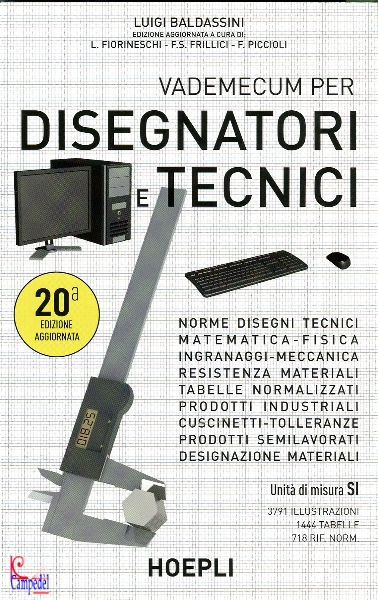 | Il volume si avvale di 3754 illustrazioni, 1425 tabelle. Sommario. 1 - Disegni tecnici. 2 - Matematica. 3 - Fisica. 4 - Ingranaggi 5 - Meccanica. 6 - Resistenza dei materiali. 7 - Tabelle normalizzati. 8 - Prodotti industriali. 9 - Cuscinetti. 10 - Tolleranze. 11 - Prodotti semilavorati. 12 - Designazione materiali. | |