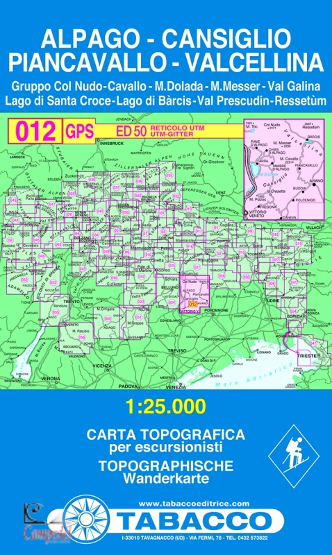 | Carte topografiche delle Dolomiti, Alpi e preAlpi Topographische Wanderkarte GPS WGS Reticolo UTM |