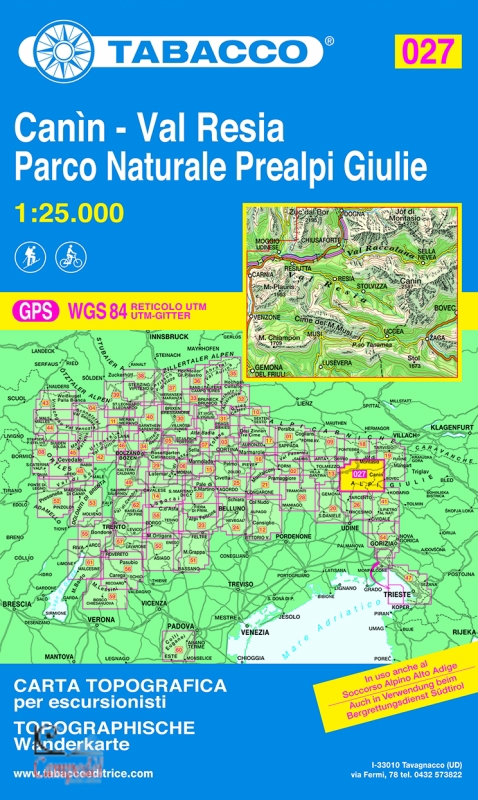| Camin - Val Resia - Parco Naturale Prealpi Giulie. Moggio Udinese - Resiutta - Chiusaforte - Venzone - Resia - Lusevera - Sella Nevea - Sella Carnizza - Passo di Tanamea - Zaga Con reticolo chilometrico U.T.M. | |